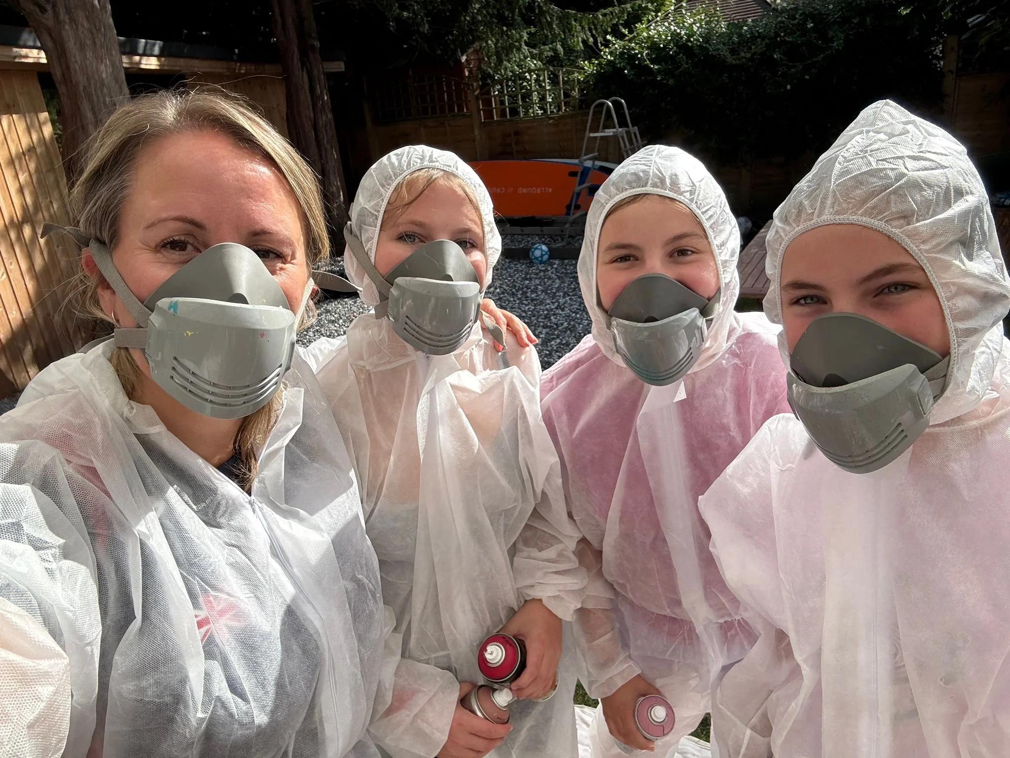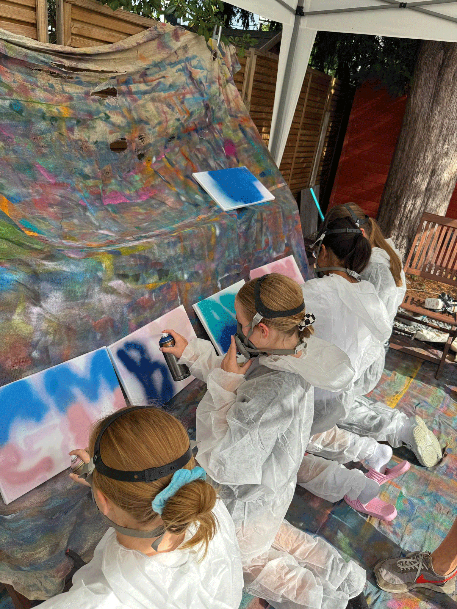 We make it easy by bringing the whole party to you, no stress, no hassle. Our team arrives fully equipped with canvases, spray paints, protective overalls, and masks, so everyone can dive into the art safely and comfortably.